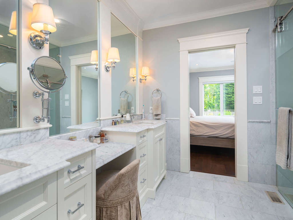 Exquisite custom family home w. traditional front porch on large lot in S. Oak Bay built by Novus Properties. The main foyer has custom raised panel wainscotting & soaring 2 storey staircase leading to upper level. Home office, w. built-in workspaces, coffered ceiling, crown mouldings, gas fireplace w. custom mantle & built-in millwork. Formal dining room w. coffered ceilings & built in cabinetry flows into a glorious open kitchen/family room area w. high ceilings, plenty of windows & easy access through double french doors to a generous deck & rear garden. Beautiful kitchen cabinetry w. plenty of cupboard space & organizers & Carrera marble countertops. White oak flooring on main level & gas hot water underfloor heating system. Master bedroom on the main, w. its generous walk-in closet & ensuite. 3 beds up, roomy media room & 2 full baths. An easy stroll Oak Bay Village, shops, cafes, restaurants, shopping, waterfront, parks, schools, golf courses & marina. Sylvia@SylviaTherrien.ca for more info